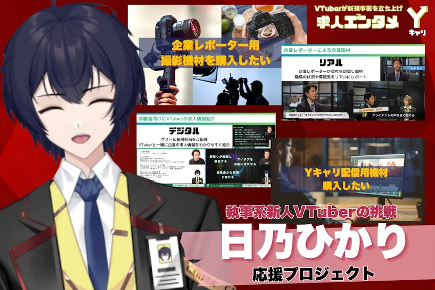 新人VTuber「日乃ひかり」の最古参ファンの獲得および企業レポーター用の撮影機材やYキャリ配信用機材購入を目的としたクラウドファンディングを開催いたします。「Yキャリ」リリース記念特別価格での提供を行います。